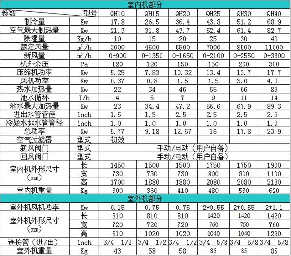 柜式熱泵性能參數:
