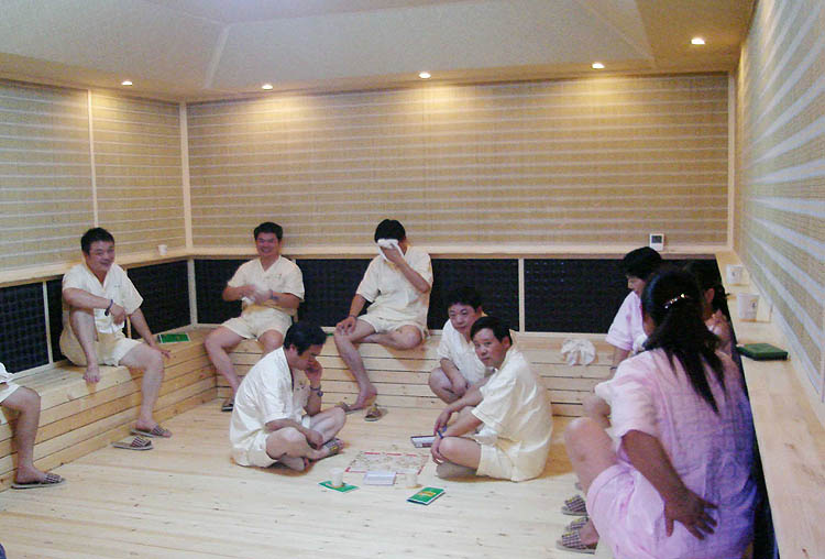 韓式汗蒸房發(fā)展至今,種類(lèi)繁多。韓式汗蒸幕是將黃土和各種寶石類(lèi)石頭加熱,讓浴者悠閑的或躺或坐在汗蒸幕內,利用純天然寶石材料放 射出的對人體有益的元素,使身體大量出汗加速血液循環(huán),使得沉積在體內的雜質(zhì)或廢物,隨著(zhù)汗水排泄出來(lái),以達到新陳代謝和養顏美容的效果。